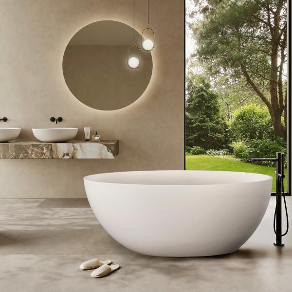 MARMY - AMORE 160x85 öntöttmárvány térbe állítható fürdőkád - MINIMÁL DESIGN FÜRDŐKÁDAK A FÜRDŐSZOBÁBAN Beépített túlfolyós, FEHÉR színű POP-UP leeresztő tartozék A kád lefolyója SZÉLEN helyezkedik el Raktáron FÉNYES FEHÉR és MATT FEHÉR színekben is. Minimalista vonalvezetésű kád Az öntött márvány kád súlya 118 kg A kád magassága 62 cm Űrtartalma 220 liter Minimalista vonalvezetésű, letisztult kád. Kényelmes és mély, a külső kecses design ellenére belül tágas és komfortos. Egy kád, amit nem kell aláfalazni, nem kell purhabbal kitölteni, és amit nem kell a falhoz fúrni.  Egy kád, amit csak be kell állítani a fürdőszobába középre, a falhoz, vagy a sarokba. UNIVERZÁLIS és egyben ÖRÖK darab.