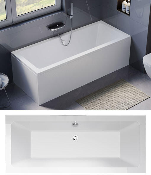 N-smart Karen egyenes akril kád Modern, kényelmes akril fürdőkád 170×80 vagy 180×80 cm méretben, középen elhelyezett lefolyóval. Két személy számára alkalmas, opcionálisan előlappal és lábszerkezettel rendelhető.