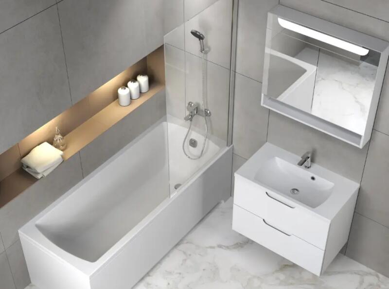 • A kád széles alja, amelyet fürdőkád paravánnal egészít ki, biztonságos és kényelmes zuhanyzást biztosít a fürdőszobában a víz szétspriccelése nélkül.
